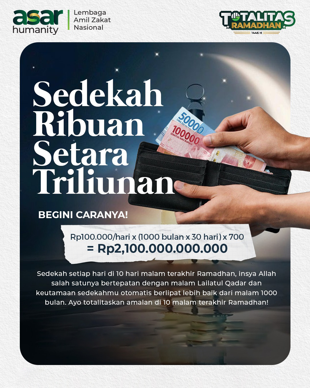Sedekah Lailatul Qadar, Lipat Gandakan Pahala