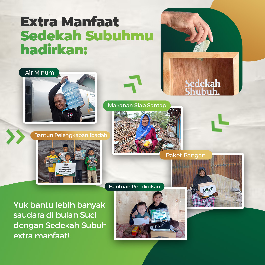 Sangat disayangkan jika melewatkan subuh tanpa sedekah. Insya Allah, sedekah subuh akan melipatgandakan rezeki, terutama jika diberikan kepada penghafal Al-Qur'an atau kaum dhuafa di daerah terpencil.