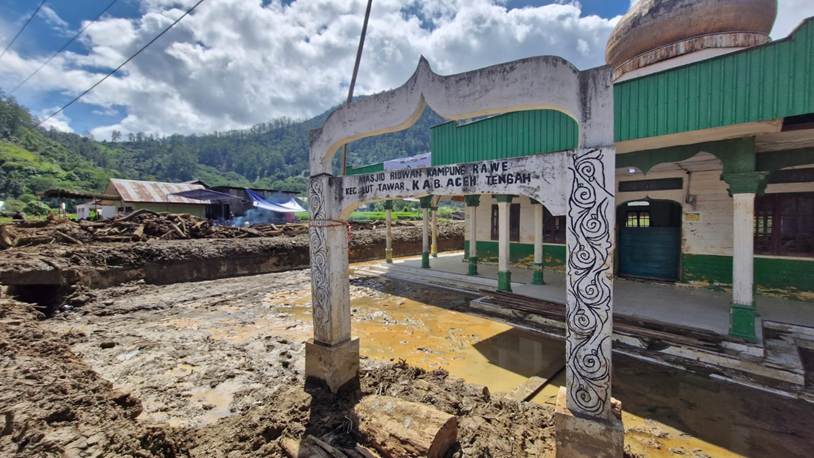 Banjir bandang yang melanda Kampung Rawe, Aceh Tengah, meninggalkan luka mendalam bagi warga. Salah satu dampak terparah adalah Masjid Ridwan, masjid tertua di kampung ini yang dibangun sejak tahun 1976, kini tertimbun tumpukan kayu setinggi atap akibat derasnya arus banjir.